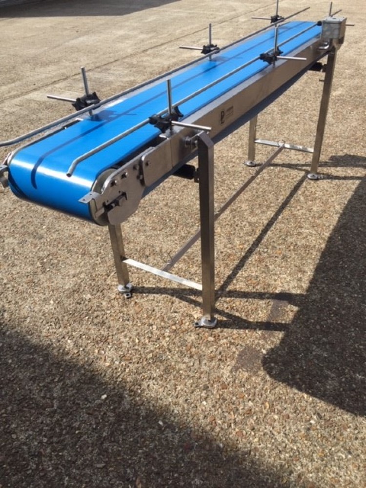 Băng tải sử dụng dây đai polyurethane dạng lòng máng, lắp trên khung đỡ chắc chắn, đưa sản phẩm đi qua vùng cân tích hợp bên trong. Toàn bộ thiết bị được đặt trên khung hở để dễ dàng vệ sinh.