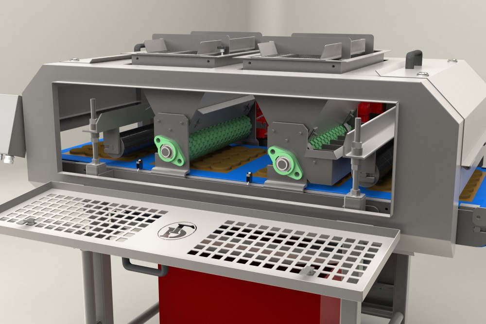 Thiết bị có khả năng phủ đều nhiều loại topping và lớp tẩm phủ lên sản phẩm của bạn. Hệ thống băng tải chuyên dụng này thường được sử dụng cho các sản phẩm nướng như cookies, muffins, bánh quy và pizza.